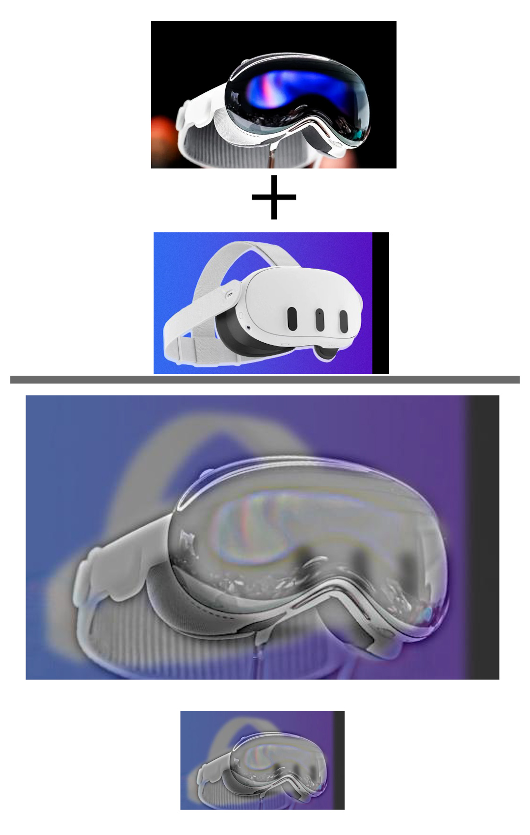 Another example I created was a hybrid image showing the Apple Vision Pro and the Meta Quest 3. I composited the high frequencies of the Vision Pro over the low frequencies of Quest 3.