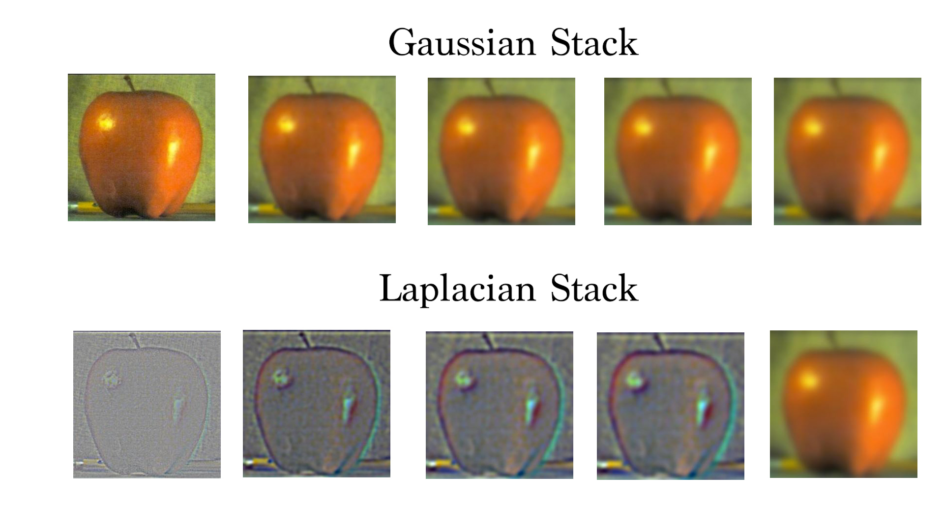 In this example, I have created a gaussian and laplacian stack for the given apple image.